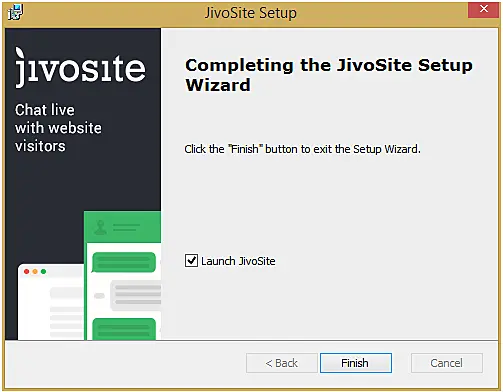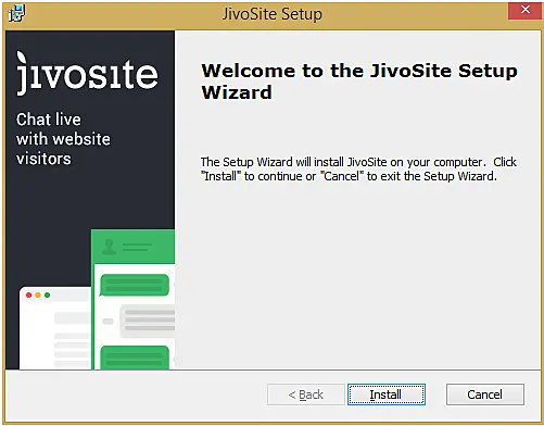Utilice el link "Instalar aplicación de JivoChat" o descargue la aplicación por los enlaces anteriores. Un archivo jivosite.msi de instalación (para Windows u otro, depende de que versión del sistema operativo) se descargará a su PC. El proceso de instalación es muy simple, usted debe hacer clic en el botón de ejecutar el archivo, pulse "Instalar" y espere un poco hasta que se termine la instalación.
