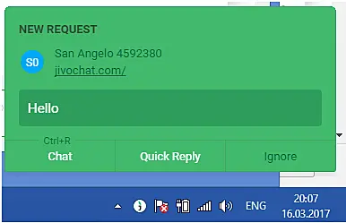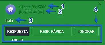 • Tipo de notificación: Aquí puede seleccionar el tipo de notificaciones o desactivarlas: Predeterminado Jivochat es el que se muestra en la siguiente imagen