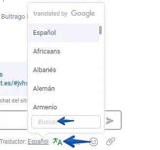 Traductor: Al hacer clic podrá traducir tanto sus mensajes cómo los del visitante.