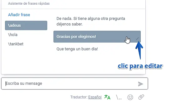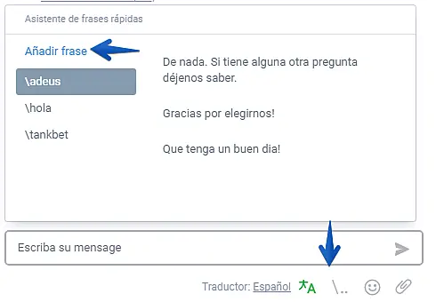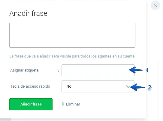 Frases rápidas: Podrá guardar frases para que sus agentes o usted puedan usarlas cuándo necesite.