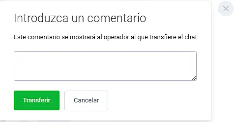 A continuación escriba el mensaje que se mostrará al agente (el visitante no verá este mensaje) y haga clic en Transferir: