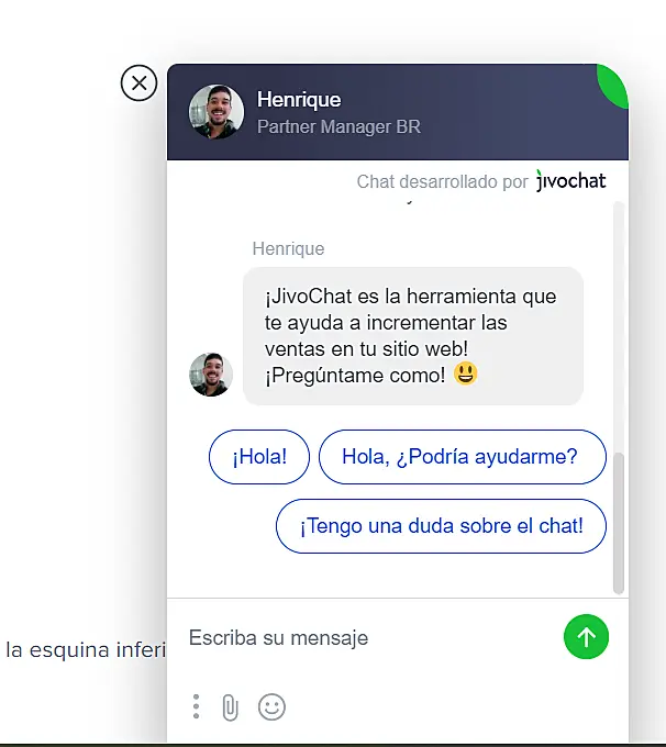 Cuando los visitantes abren su sitio web y ven la ventana de chat, la mayoría de los diálogos se inician a partir de una invitación automática - el chat aparece con la invitación y el visitante puede enviar un mensaje de respuesta.