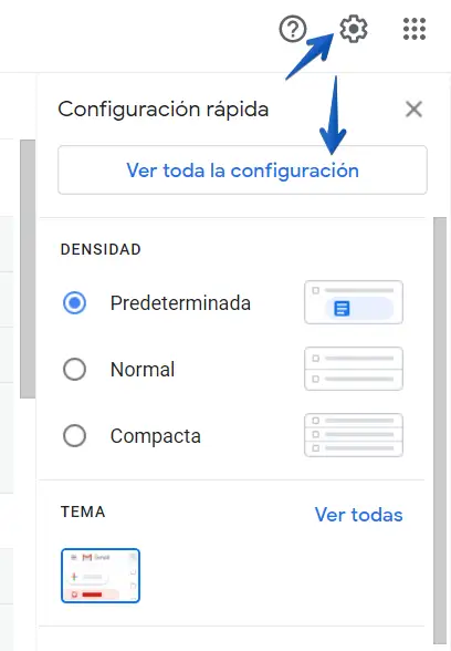 **1.**Inicie sesión en su cuenta de gmail y vaya a "configuración" > "ver toda la configuración"