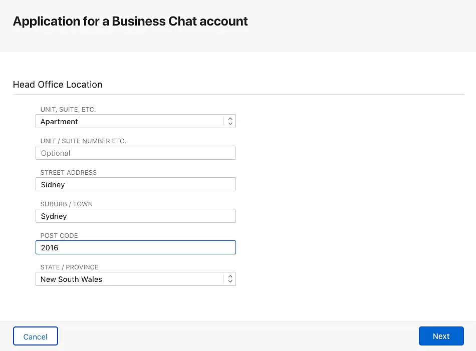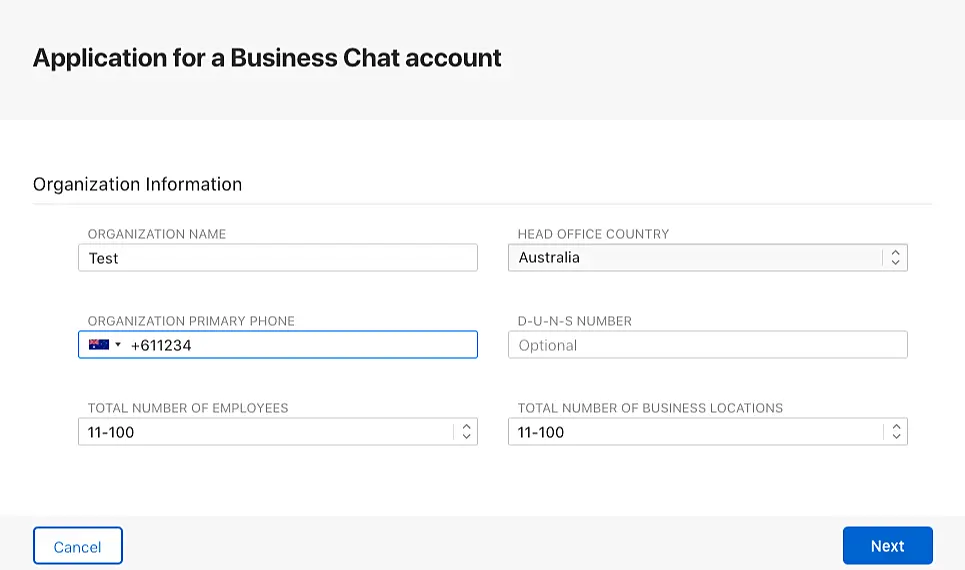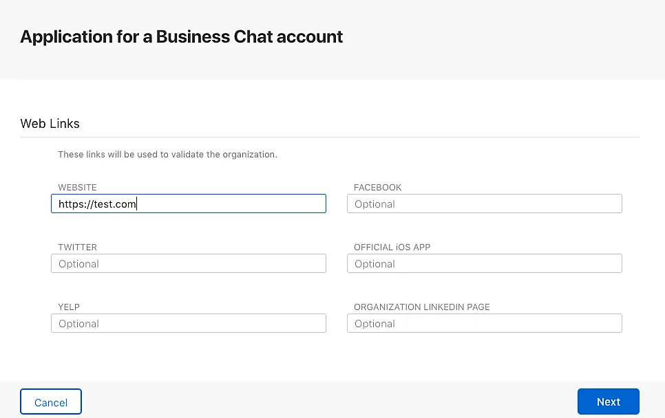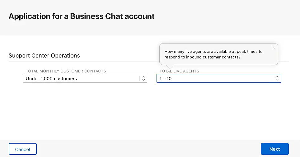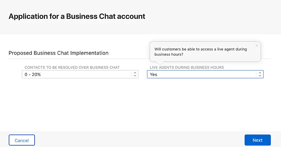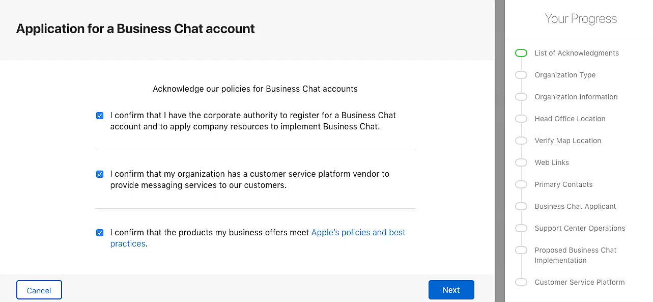 Luego, proceda a crear su cuenta de Apple Business Chat.