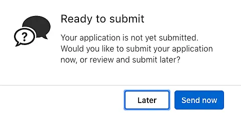 Después de especificar todos estos datos, se le pedirá que envie la aplicación para su consideración inmediata. Sin embargo, es mejor posponerlo y rellenar algunos campos adicionales. Haga clic en "Later".