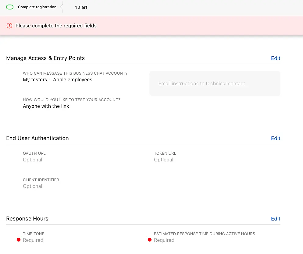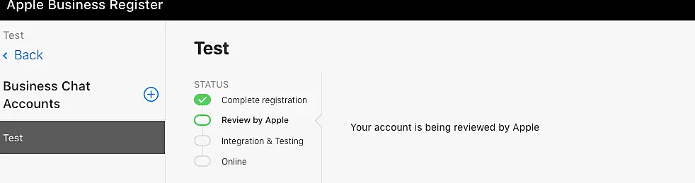 Para conectar el Business Chat de Apple, tendrá que crear una cuenta en Apple Business Register.
