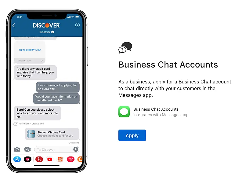 Cree su cuenta de Business chat de Apple y conectela a JivoChat para que los visitantes puedan iniciar conversaciones con usted desde Maps o Siri. Además, esta integración le permite reemplazar nuestro chat en el sitio web con el chat de Apple Business para los visitantes de Iphone y Ipad. Esto quiere decir que los visitantes siempre estarán en contacto en Messenger y nunca perderán su respuesta.