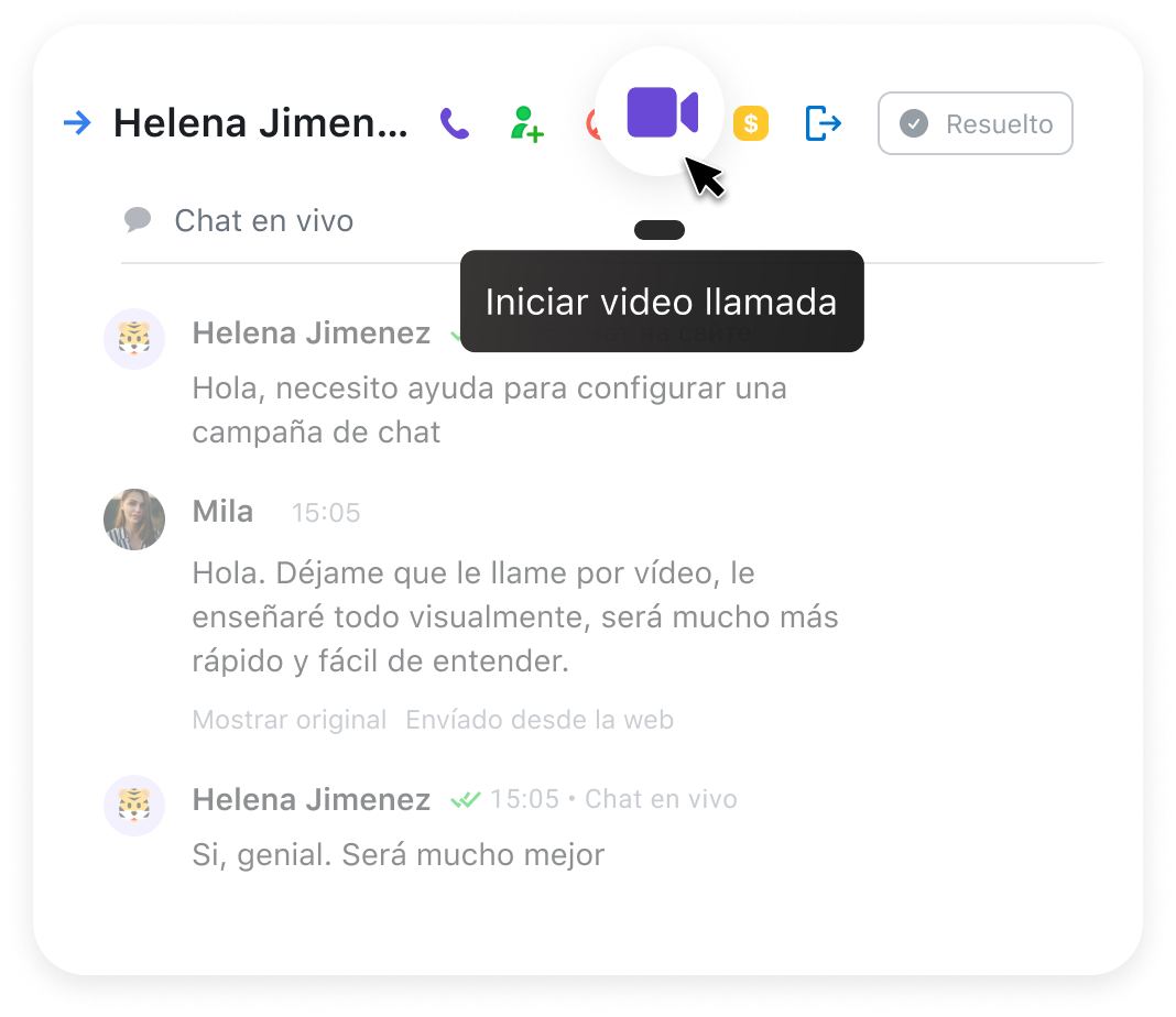 Uno de cada tres clientes es más propenso a utilizar los videochats para comunicarse con las empresas. Conecte la solución de videollamadas de JivoChat para interactuar con los clientes de la forma que prefieren.