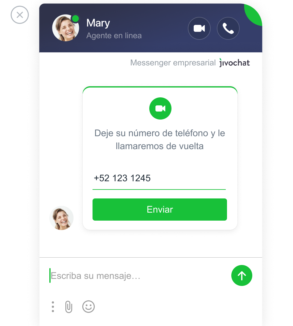 No requiere descargas adicionales. Las videollamadas se procesan directamente en la ventana de JivoChat